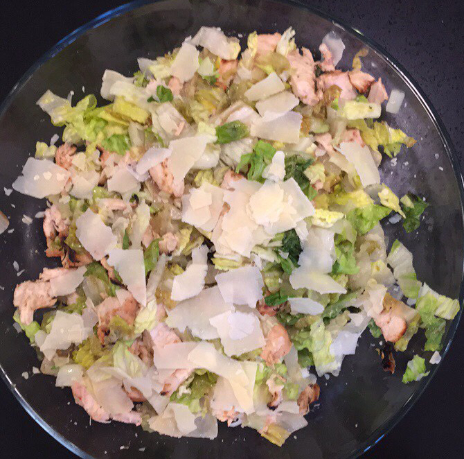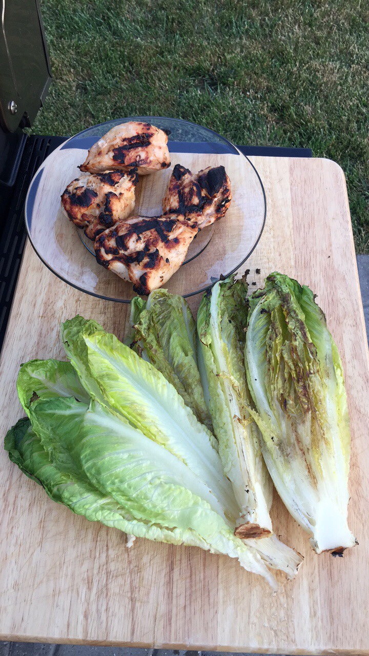 This is how she taught me. Cut the Romaine lengthwise leaving the stem attached at the bottom so it obviously doesn’t come apart while grilling. Drizzle olive oil on the cut side and grill! Turning so it doesn’t char.