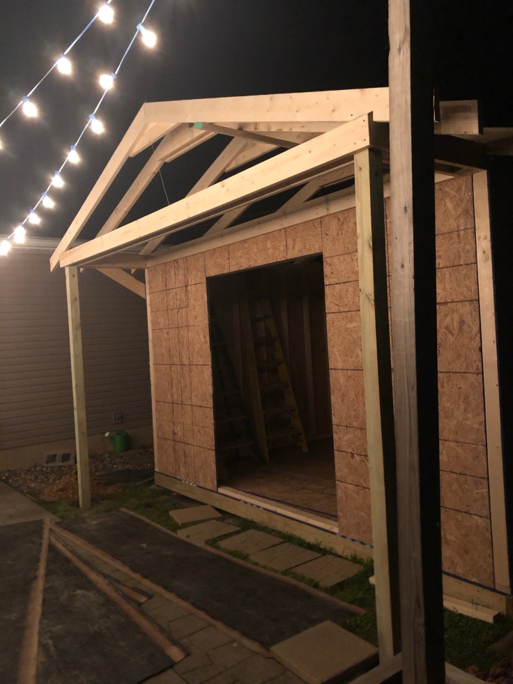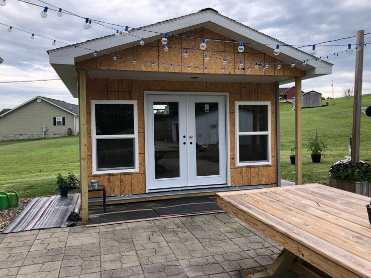 For years, I’ve saved posts on my Pinterest board of she sheds. Which, by the way, I do not like that saying – She Shed. Wine Shack is cute – but I wanted something different – thus – Paula’s Patio Pub. GW calls it Triple P. Quarantine 2020 became the perfect time to begin. GW is in high demand to build things for other people and this year he said he would hold off on other projects until he got the Triple P completed.