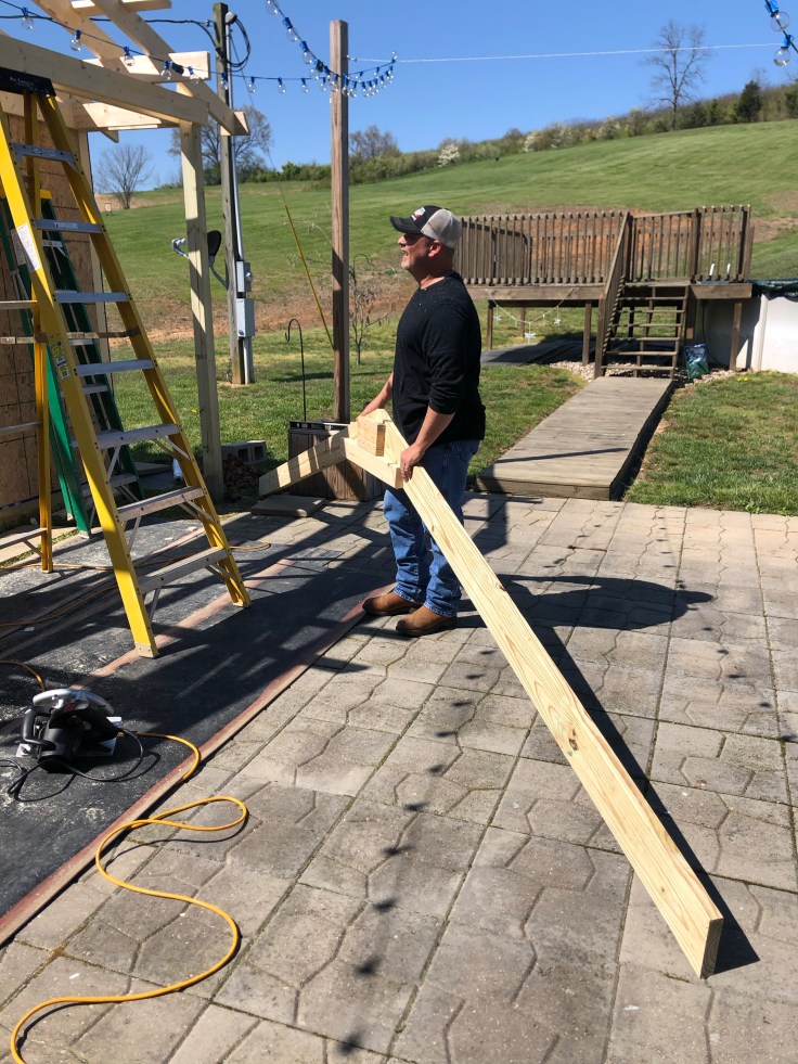 I had no idea that this addition off of the patio was going to become as large as it is. I was half joking when I said – it needs to be bigger. My Dad always said – should’ve been bigger – after we moved into our home. Believe me, it’s big enough. And as I think back – my Dad actually added on to the length of the house when he came to mark where the basement was going. And yet, he said should’ve been bigger. I have to laugh.