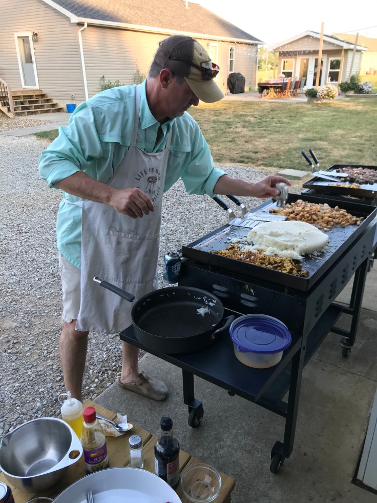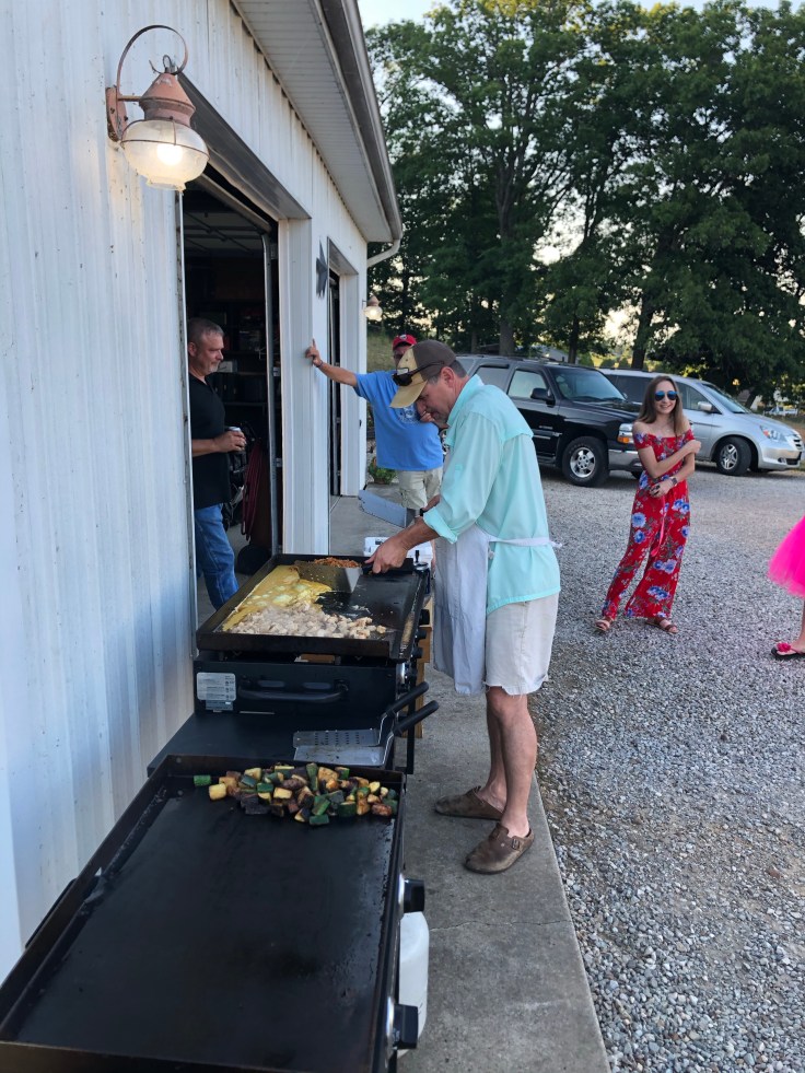 Shannon is another very close friend of all of us and just so happens to be an amazing cook. I do believe I have mentioned him in a past blog post and if I haven’t I darn should have before today! He came out and used his culinary skills on the flattop grills and prepared us a gourmet Habachi meal of steak, chicken, shrimp, fried rice and zucchini. WOWZA! I had everything prepped for him so he didn’t have to do anything other than cook, eat and enjoy the evening with us.
