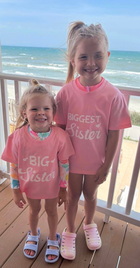 And, speaking of next year, I am getting another Great!!! The girls had on the cutest shirts to announce to Uncle Greg and myself they are going to both be big sisters!! I was standing in the exact same spot when their mother told me about Canaa The Great!